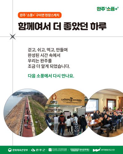 앞으로도 완주의 매력을 새롭게 발견할 수 있는 다양한 프로그램으로 다시 찾아오기를 기대합니다.